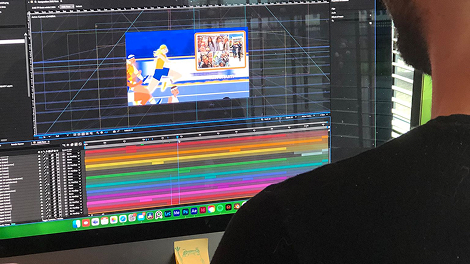 De animatoren en editors brengen de illustraties tot leven. Niet alleen met beweging, maar ook met geluidseffecten, muziek en visuele effecten.